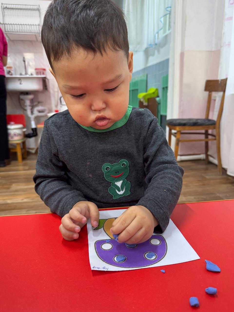 Қоршаған әлеммен таныстыру Мүсіндеу Мақсаты:Саіырауқұлақтың бос болып бейнеленген жерін толықтыру. Міндеттері: Ермексазды тақтайшаға қоюды және арнайы ермексазды пайдалануға арналған таяқшамен дұрыс қолдануға үйрету.