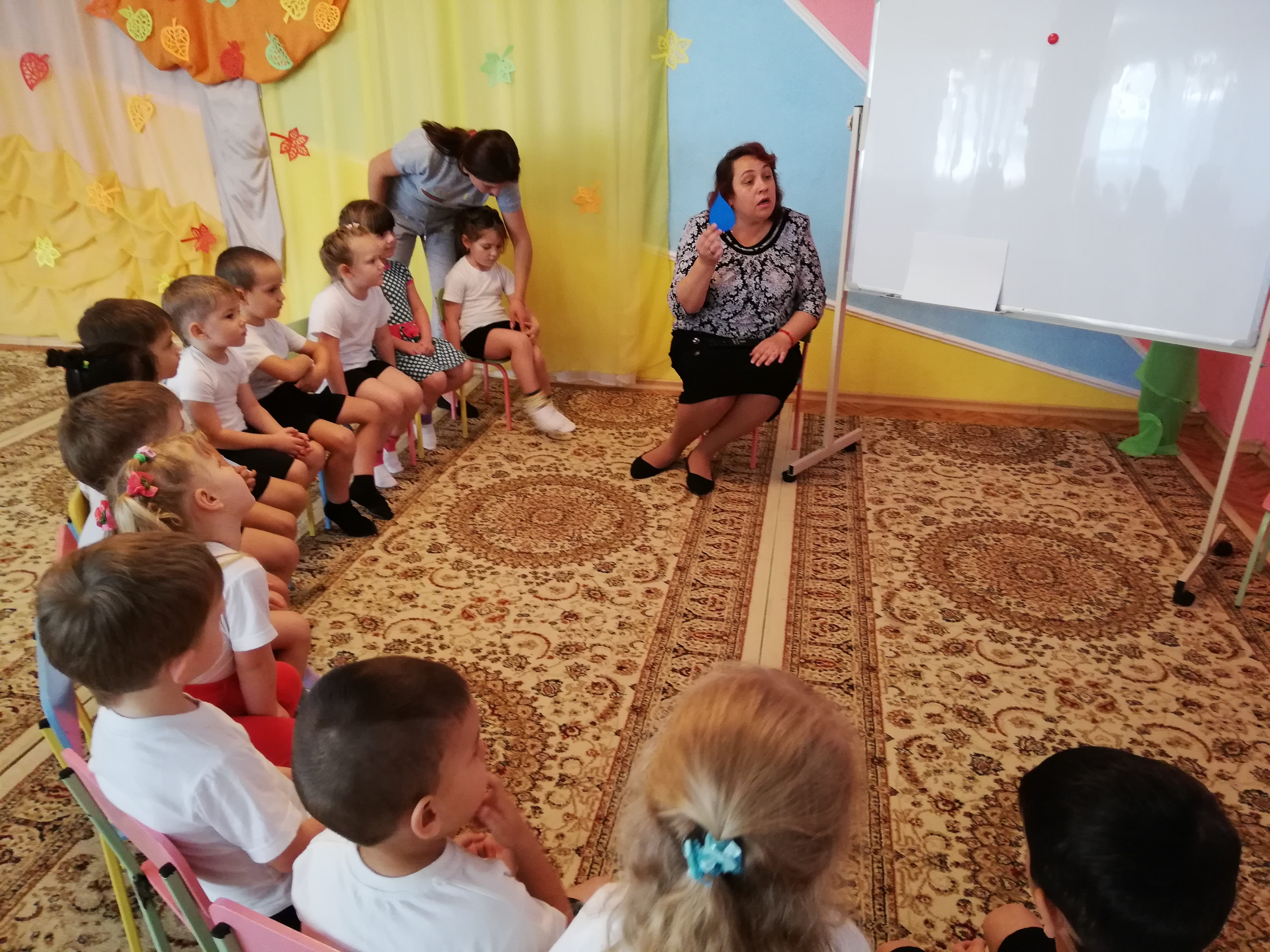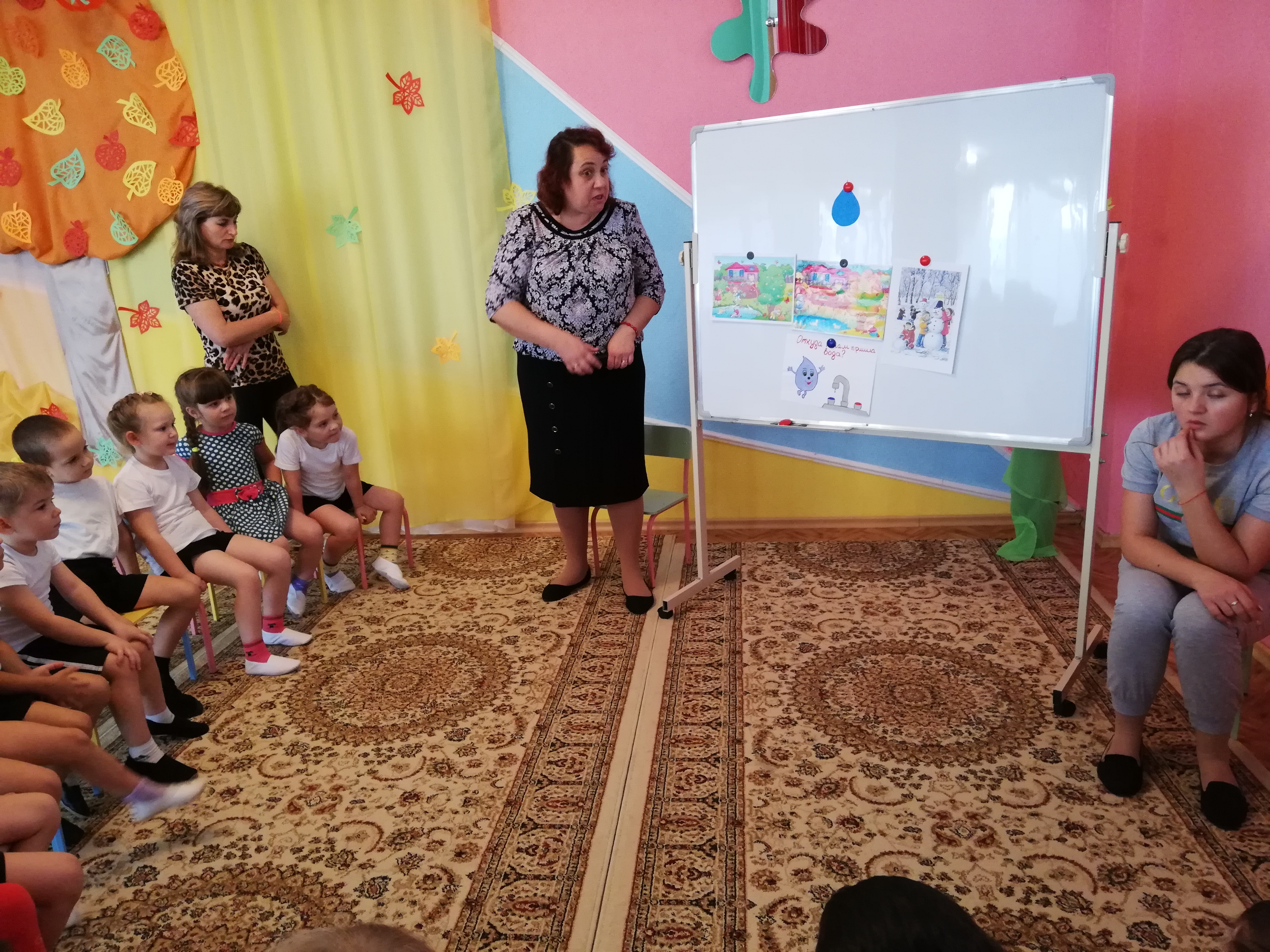 Ребятам была поведана история про маленькую капельку, которая с подружками спрыгнула с тучки, капельки заморозил ледяной ветер и они стали ледышками, а ведь без воды всё на земле погибнет. Педагог предложил разморозить лёд с помощью песенки и горячего солнышка, а после отправиться в путешествие по местам, где живёт капелька. Дети превратились в писателей и составляли рассказы о пользе воды, сезонных изменениях состояния воды. Затем они вместе с музыкальным руководителем озвучили небольшой рассказ «На заре», используя музыкальные инструменты: металлофон, ксилофон, маракасы, бубны, колокольчики, барабан и продолжили путешествие. Отдыхая на привале, увидели и услышали, как звенит ручей в горах, побывали на море и океане, отметили, что музыка моря громкая, тяжёлая, а мелодия ручейка лёгкая, переливающаяся. Весело и задорно танцевали с подаренными гостьей волшебными капельками, устроили сюрприз для героини занятия, исполнив песенку «Кап- кап, тук- тук- тук», а позже отпустили нашу гостью к мамочке на тучку, подув горячим ветерком, капелька испарилась и улетела на небо.
