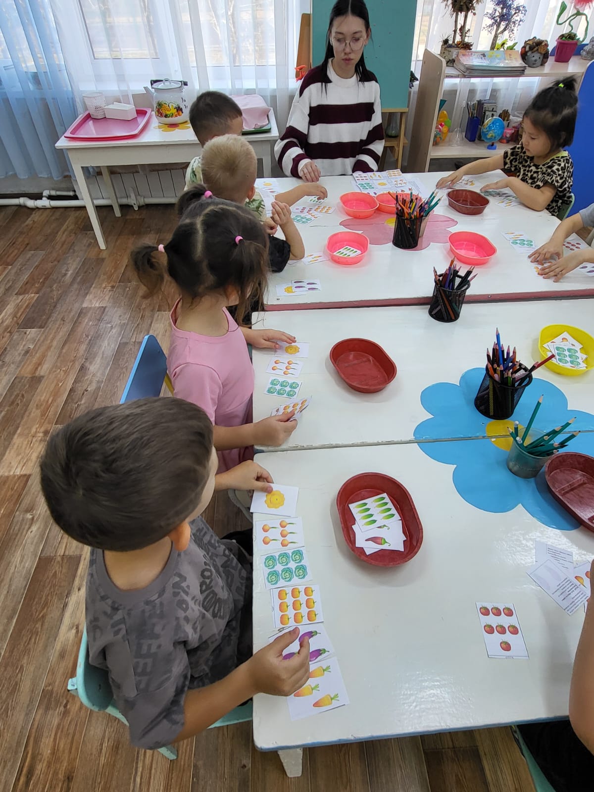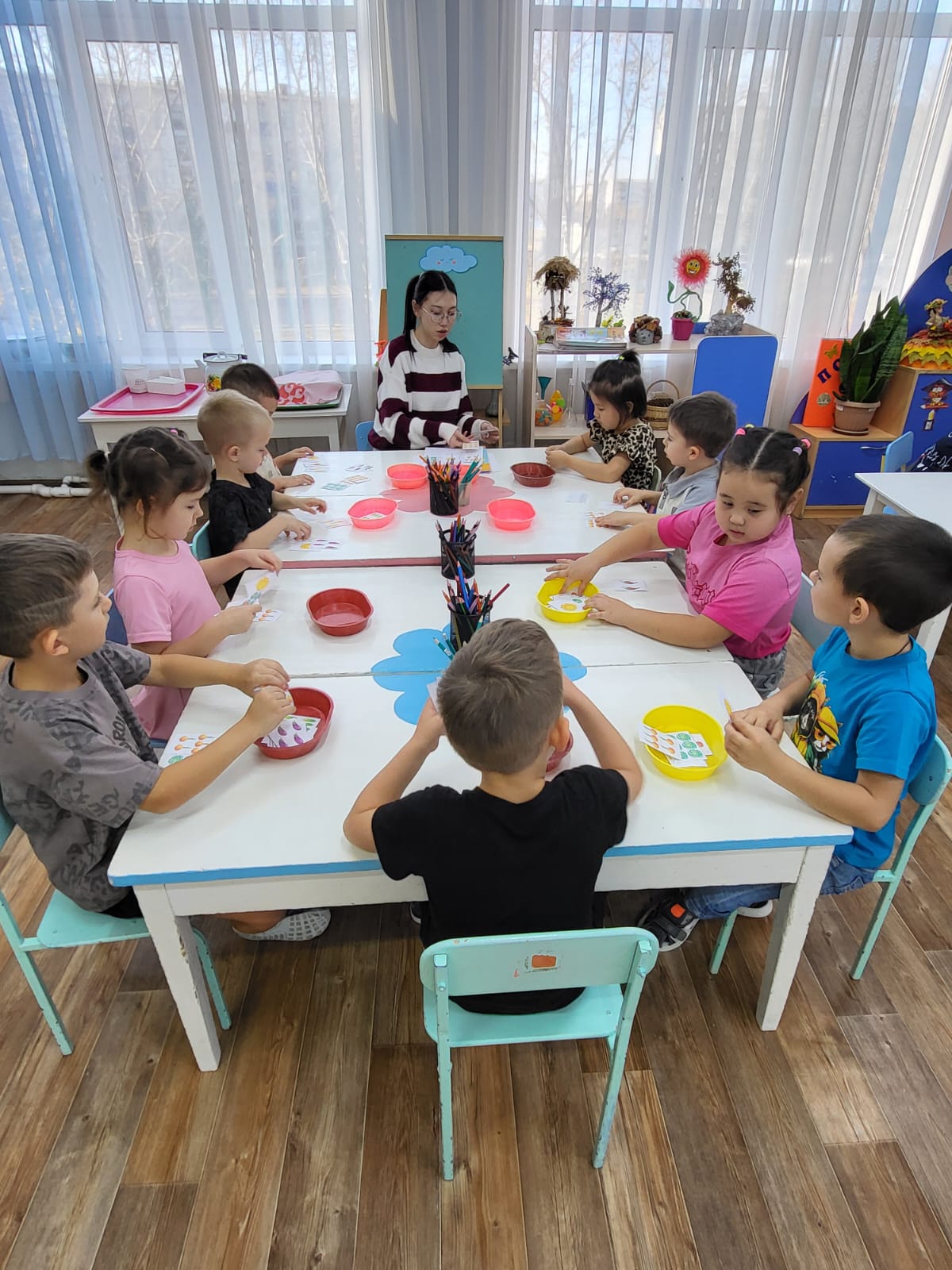 В группе «Капелька» на занятии основы математики используются игры для развития логичского мышления, критического мышления и аналитического мышления, что успешно формирует основу для успешного обучения в школе. Дети научились соотносить количество предметов с цифрой.