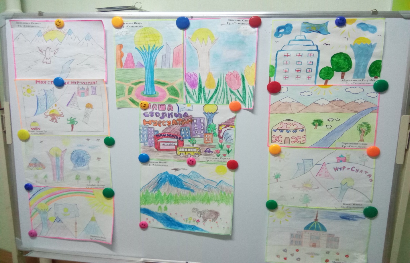 По рисункам заметно, что в сознании ребят основным символом нашей столицы является Байтерек. Но были и правительственные здания, музеи, океанариум..Видно желание ребят побывать хоть раз в столице Казахстана.