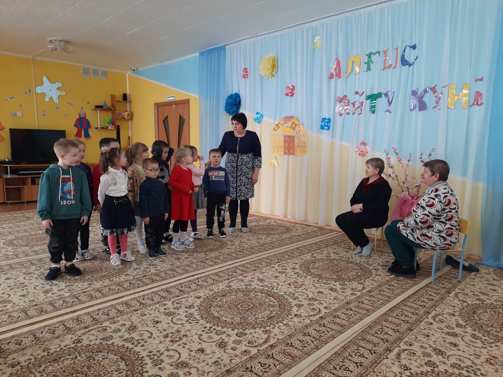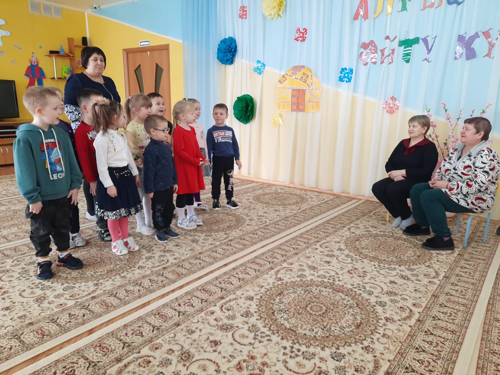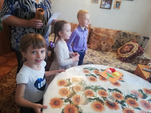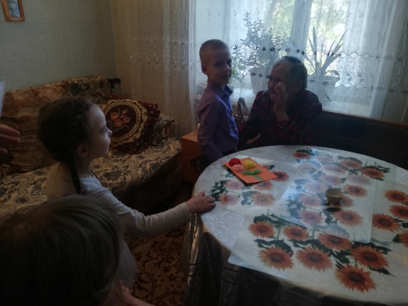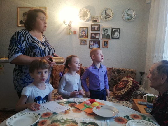 Воспитанники детского сада вместе с педагогами, поздравили пенсионерку Марию Алексеевну с днем пожилого человека.